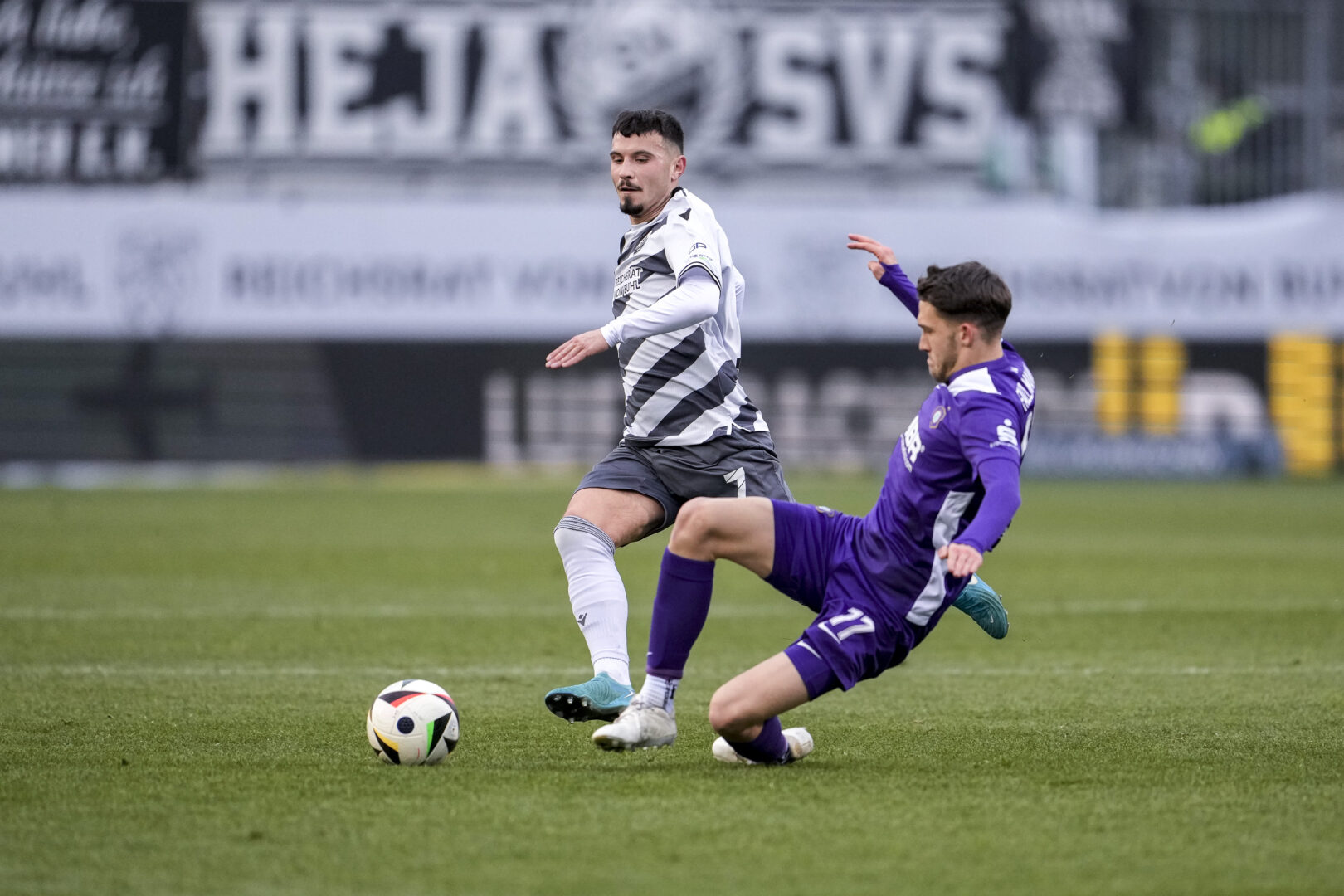 Sandhausens Stürmer Stanislav Fehler (li.) im Zweikampf mit Pascal Fallmann von Erzgebirge Aue