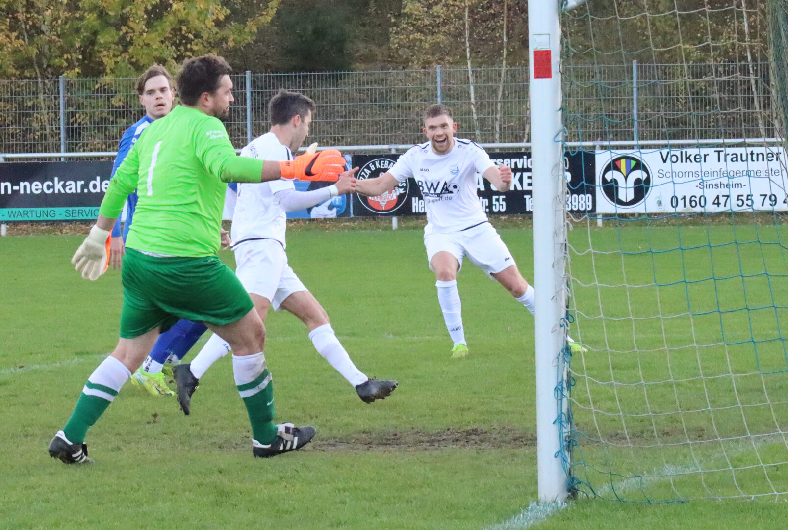 Lukas Authenrieth trifft nach Vorarbeit vom Luca Romig zum 3:1 – rechts freut sich Christian Vogt über den Treffer
